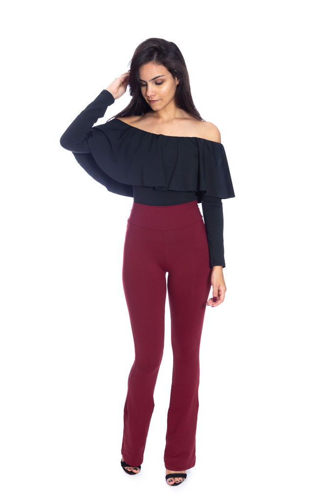 Body ciganinha com babado e manga longa. Modelagem ajustada ao corpo, perfeito para combinações de inverno como calças e saias.
