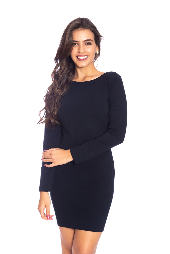 Vestido Moda Vicio Justo Gola Careca Manga Longa